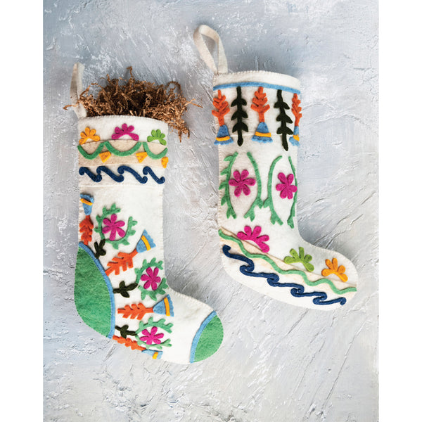 18"H Wool Felt Stocking with Applique, Multi Color, 2 Styles
